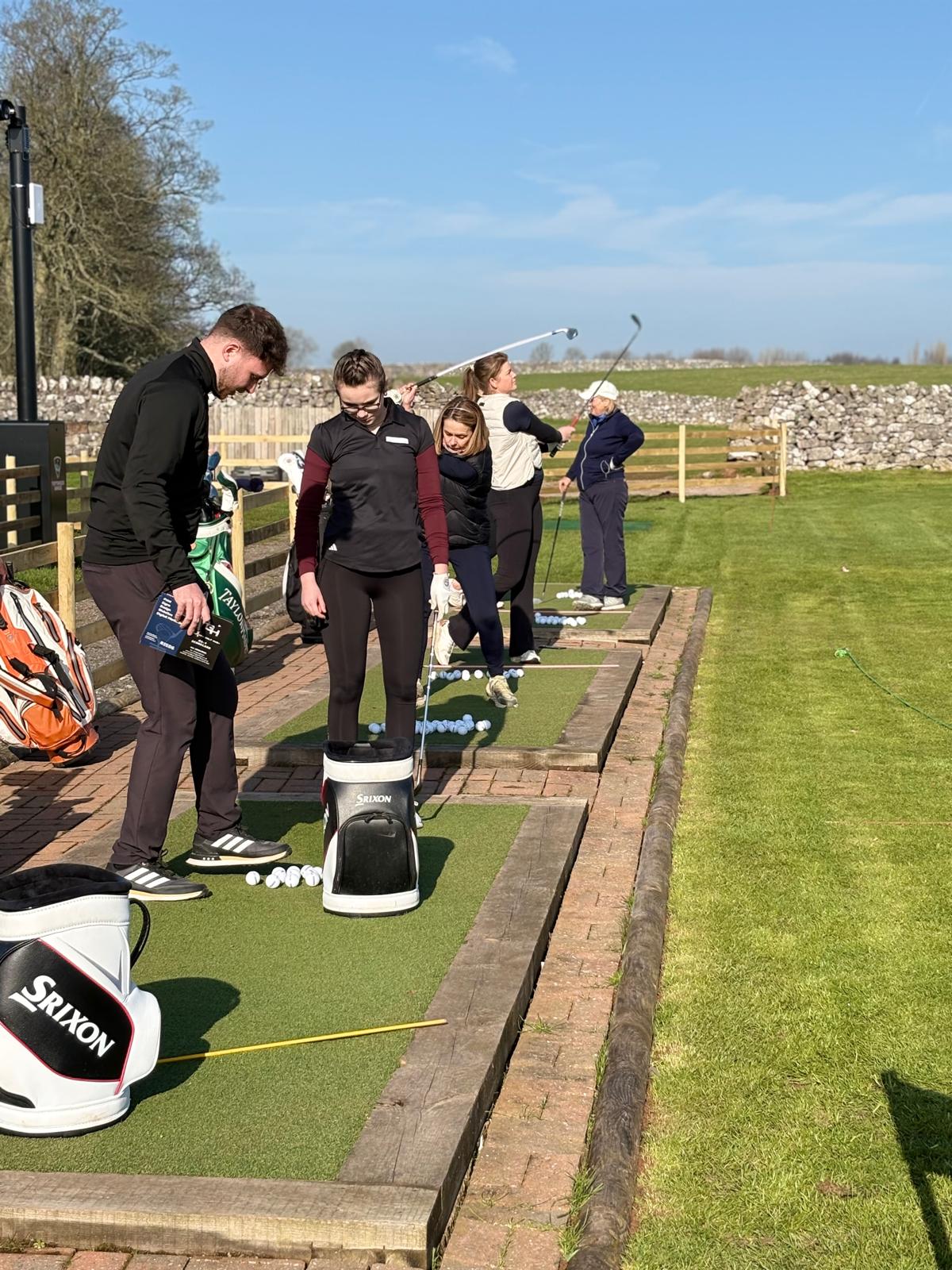 Captain Jill Thompson and President Carole Story watched PGH Professionals Andrew Pickering and Lee Edwards teach Emily Smith, Rebecca Davidson, Carys McDonough, Sharron Simpson and Niamh Carruthers on techniques and alignment.